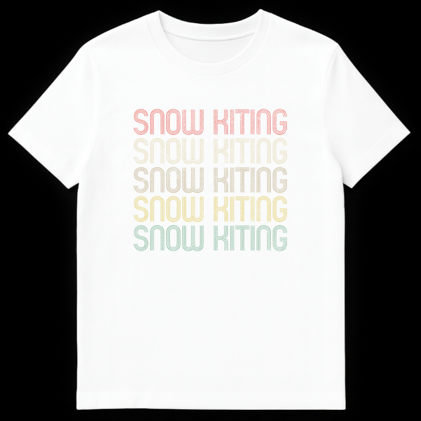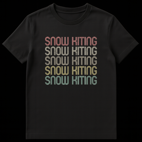 Embrace your passion for the slopes with this unique Snow Kiting t-shirt, featuring the sport’s name repeated five times in a striking retro 70s/80s typography. Each line boasts a distinct, muted vintage color and a distressed texture, creating an authentic, worn-in feel. It’s the perfect statement piece for any snow kiter or winter sports lover, making it an ideal gift for those who live for the wind and snow.