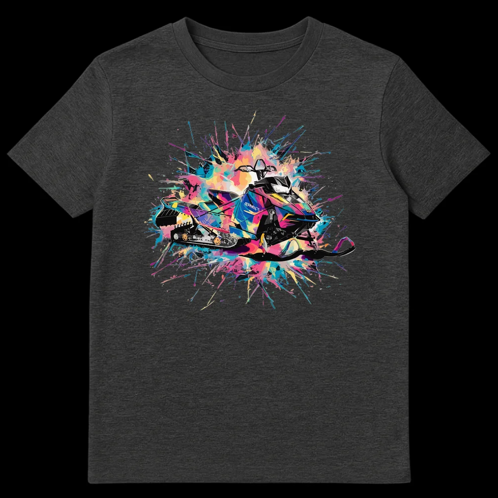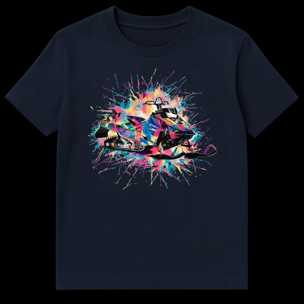 Embrace the adrenaline of winter with our dynamic Snowmobiler Colorful Ride T-shirt, a must-have for every snowmobile enthusiast. This design brilliantly showcases a modern snowmobile emerging from an explosion of vibrant, kaleidoscopic paint splatters, all set against a stark black background for maximum visual impact. It’s an artistic celebration of speed, energy, and the exhilaration of extreme winter sports. The unique blend of vector precision and abstract watercolor style makes this design truly stand out, evoking the thrill of kicking up snow and experiencing the dynamic beauty of a ride. It’s more than just apparel; it’s a bold statement for those who live for the slopes and the roar of a snow machine. Gift this striking tee to a fellow rider, a family member passionate about winter adventures, or anyone who appreciates a powerful, colorful, and unique graphic statement celebrating the snowmobiling lifestyle. Wear your passion with pride and artistic flair!