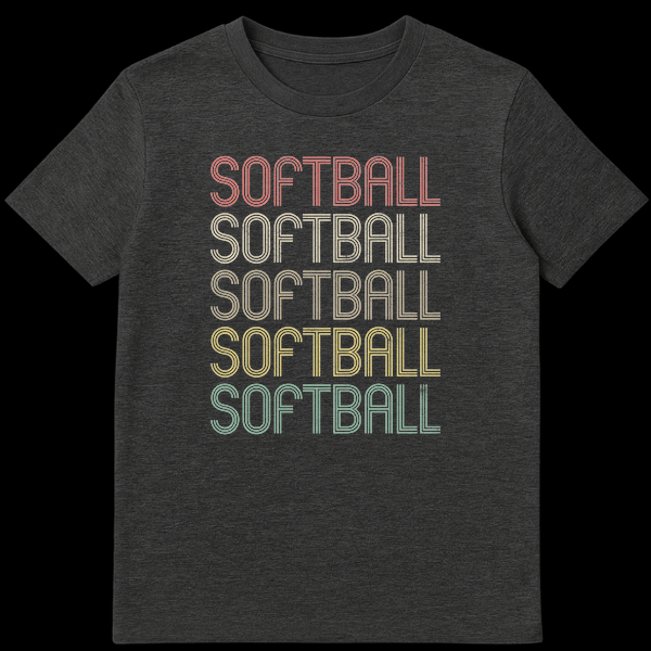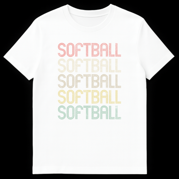 Embrace your passion for the game with this vintage-inspired Softball Enthusiast T-Shirt. Featuring the word “SOFTBALL” repeated in a cool, stacked retro design with a distressed finish and a muted multicolor palette, it’s a stylish way to show your love for the sport. Perfect for players, coaches, or fans, this tee makes an excellent gift for any softball enthusiast.