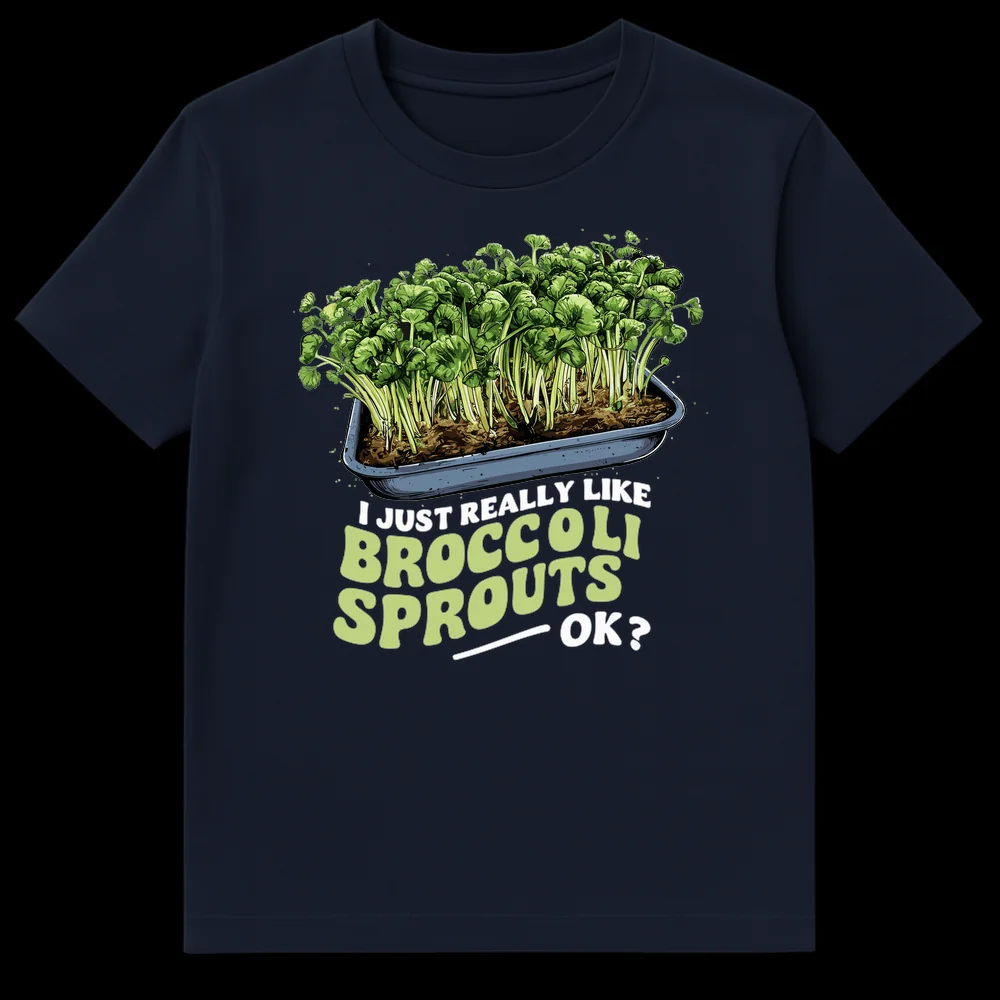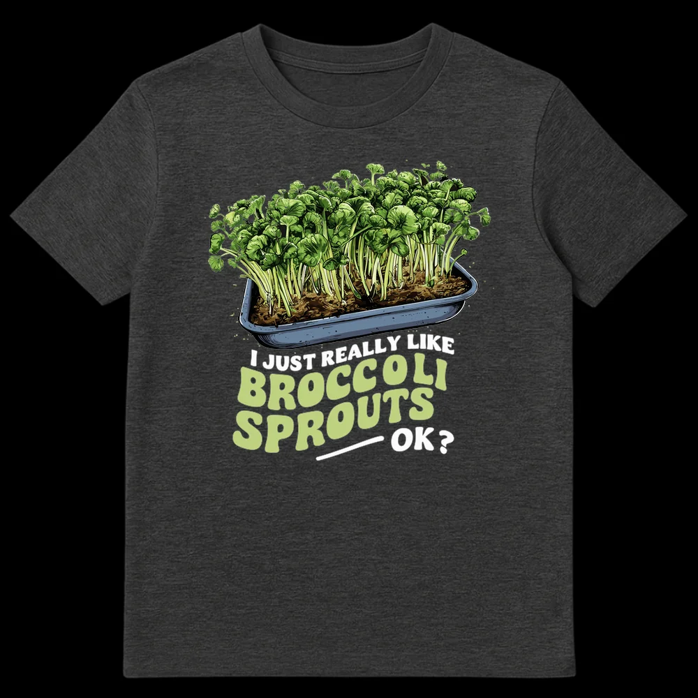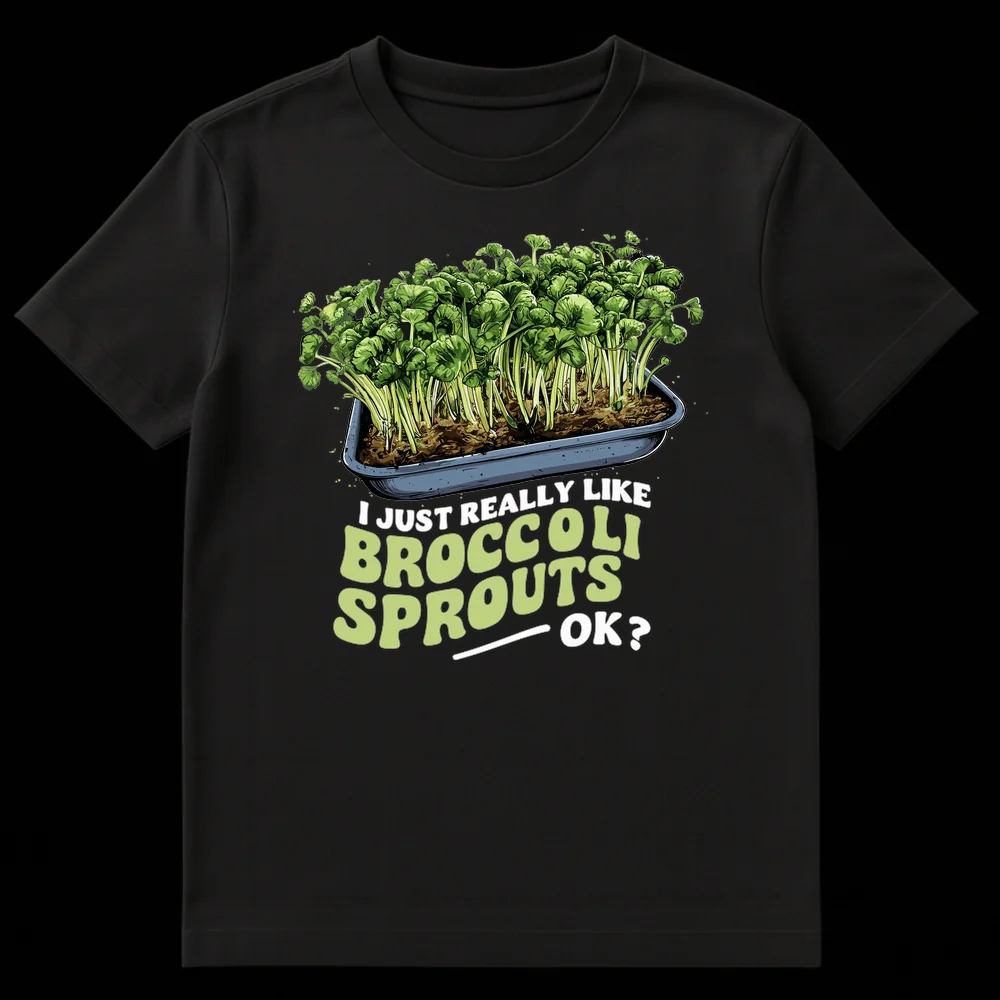 Declare your specific, wholesome passion with this “I Just Really Like Broccoli Sprouts — OK?” T-shirt. Featuring a vibrant illustration of fresh sprouts, this design humorously asserts your love for this often-underestimated vegetable. It’s the perfect gift for health-conscious friends, plant-based foodies, or anyone with a quirky, relatable food preference.