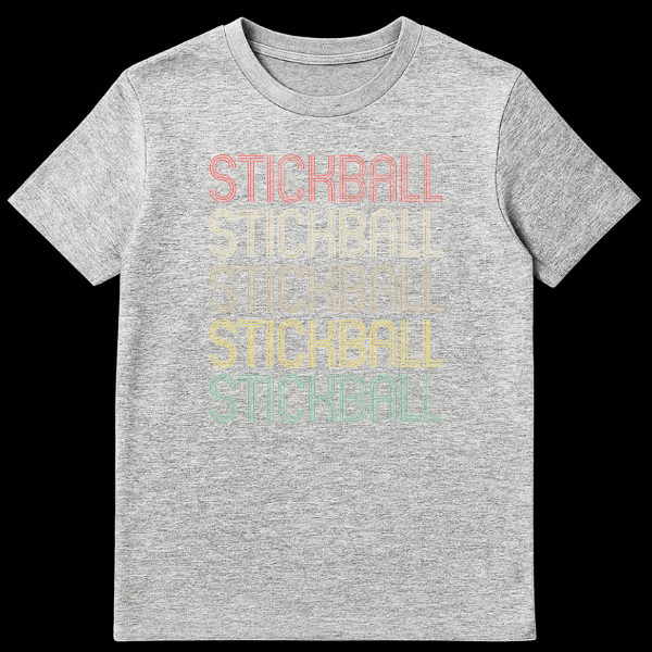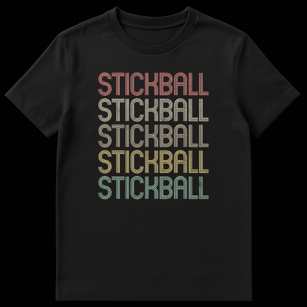 Step back in time with our exclusive Stickball Enthusiast t-shirt, a tribute to the quintessential urban street game. This design prominently features the word ‘STICKBALL’ repeated five times, rendered in a striking retro typography with a triple-line outline and a cool distressed finish for that authentic vintage vibe. The gradient of muted, classic colors—from faded coral to dusty teal—further enhances its nostalgic appeal. There’s no explicit humor, but the design’s strength lies in its powerful cultural recognition and homage to a cherished pastime. It’s an ideal gift for adults 40+, New Yorkers, baseball enthusiasts, and anyone who appreciates historical sports culture, urban community traditions, or unique vintage graphic tees. Wear your passion for classic street games and evoke fond memories of childhood summers with this timeless piece.