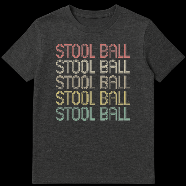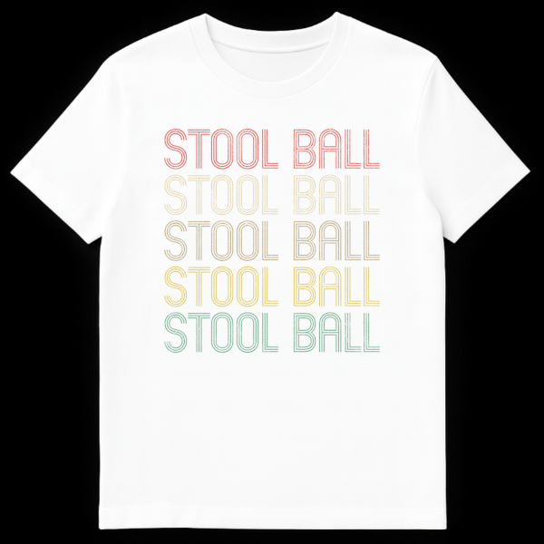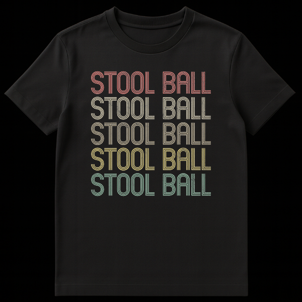 Unearth the past with our exclusive Stool Ball t-shirt, a tribute to the lesser-known medieval English game that predates cricket. This tee captures a cool, vintage vibe with its retro 70s/80s typography, presented in a cool gradient and finished with a distressed, worn-in texture on a classic black background. More than just a design, it’s a conversation starter that celebrates obscure historical sports and offers a playful, subtle humor for those in the know. Perfect for history enthusiasts, sports trivia aficionados, or anyone who loves unique, vintage-style apparel with a story. Gift this distinctive t-shirt to a friend who appreciates the charm of bygone eras and a good ‘dad joke.’