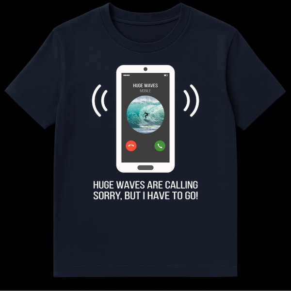 Catch a wave of humor with this unique design featuring a phone screen interrupting the call of the ocean. The shirt humorously depicts “HUGE WAVES ARE CALLING, SORRY, BUT I HAVE TO GO!” making it a perfect statement for anyone who’d rather be riding the surf than answering their phone. It’s an ideal gift for surfers, beach lovers, or anyone with a deep connection to the sea.