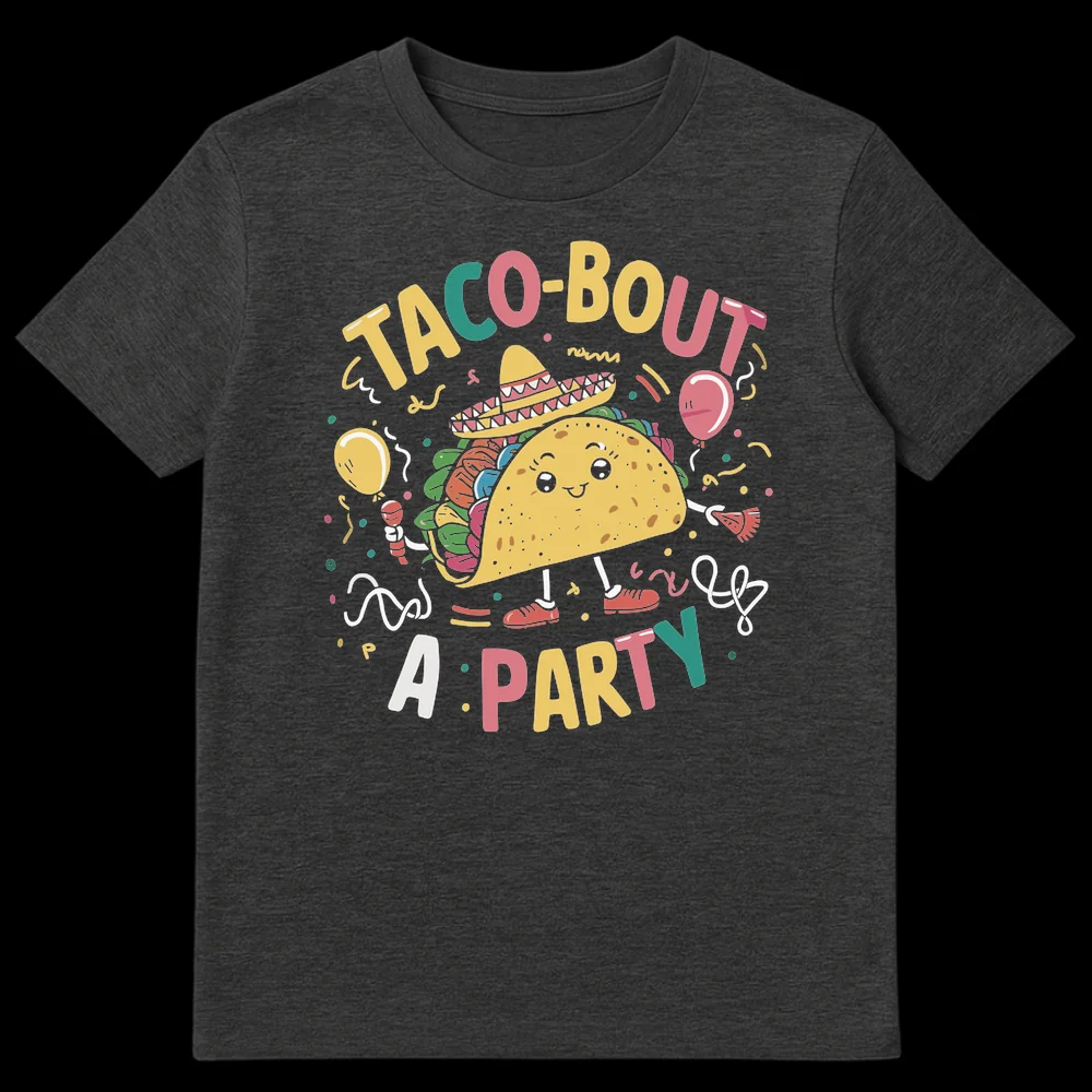Unleash the fiesta wherever you go with our vibrant “TACO-BOUT A PARTY” t-shirt! This eye-catching design brings the ultimate pun to life, replacing ‘Talk’ with ‘Taco’ for a deliciously clever phrase that’s sure to get smiles. Front and center is a cheerful, anthropomorphic taco character, fully equipped with a festive sombrero and a microphone, ready to sing and celebrate amidst a flurry of colorful confetti and balloons. Overflowing with colorful fillings, this taco isn’t just a meal—it’s the life of the party! Crafted for taco enthusiasts and pun aficionados, this tee is perfect for Cinco de Mayo celebrations, summer barbecues, birthday parties, or any casual day you want to inject some lighthearted humor and flavor into your wardrobe. It’s an excellent gift for anyone who appreciates food humor, Mexican cuisine, or simply loves a good laugh. Wear it and let the good times roll!