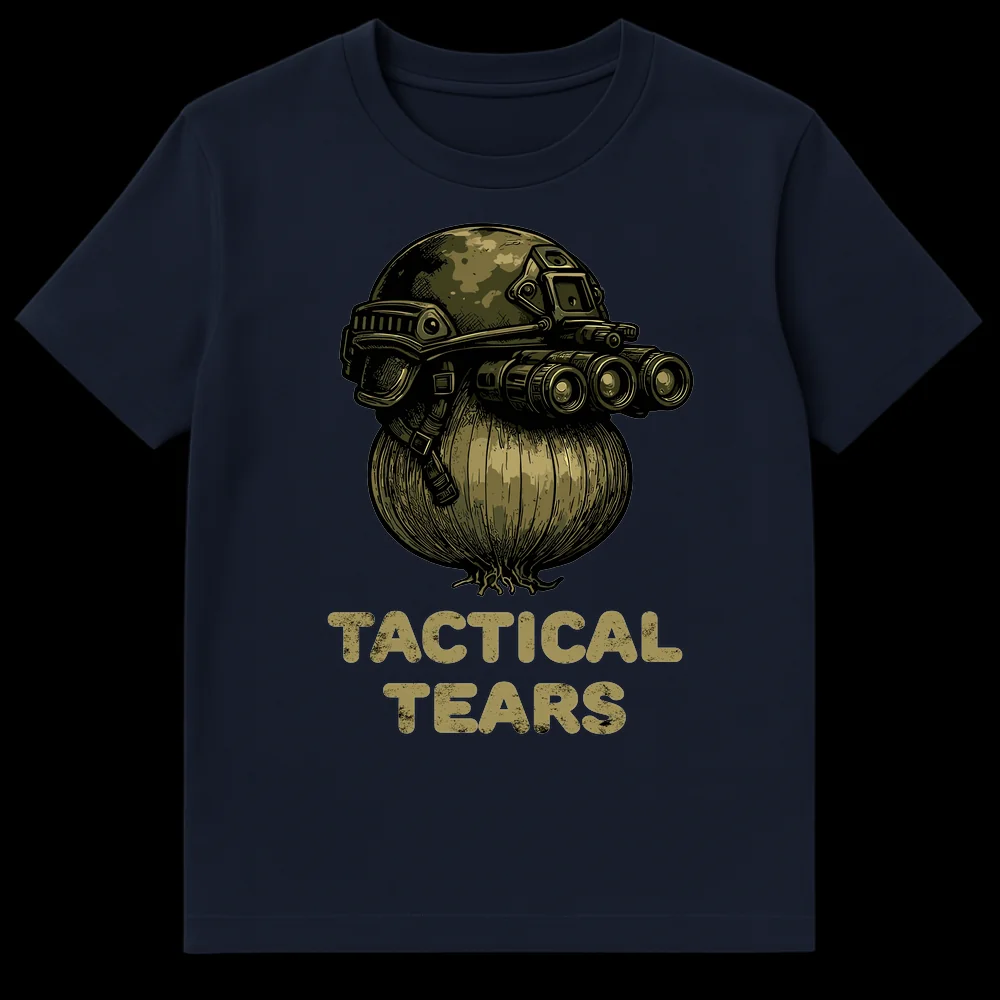 Our “Tactical Tears” t-shirt is the ultimate blend of high-octane gear and everyday kitchen comedy. This eye-catching design brilliantly juxtaposes a formidable military helmet, complete with intricate night vision goggles and camouflage details, on top of a common onion. The text “TACTICAL TEARS” cleverly plays on the dual meaning: the intense world of tactical operations and the universal experience of crying while cutting onions. It’s a smart, self-aware piece that appeals to those who appreciate a good visual pun and relatable humor. Ideal for military enthusiasts, airsoft players, home chefs, or anyone with a quirky sense of humor, this shirt is a conversation starter. Gift it to the friend who can appreciate both precision gear and a good dad joke. Crafted for comfort and style, it’s perfect for casual wear, making it a unique addition to any wardrobe.