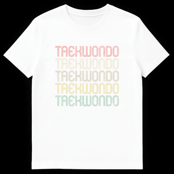 Show your dedication with our Retro Taekwondo T-shirt, featuring the word “TAEKWONDO” repeated in a distressed 70s/80s style. This unique design captures a timeless passion for the martial art, perfect for practitioners and fans. It’s an excellent gift for Taekwondo students, instructors, or anyone who loves vintage sports aesthetics.