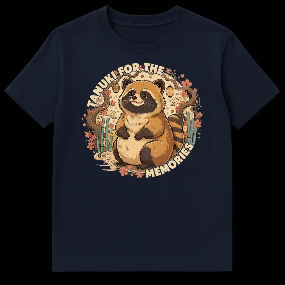 Embrace the cuteness with our “Tanuki For The Memories” t-shirt, a clever pun on a classic phrase featuring an adorable Japanese raccoon dog. This design celebrates fond memories and the whimsical charm of the tanuki, surrounded by beautiful sakura and bamboo. It’s the perfect gift for Japanese culture enthusiasts, pun lovers, and anyone who adores cute animals with a unique twist.