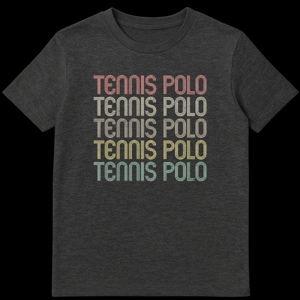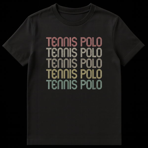 Serve up some style with this clever “TENNIS POLO” t-shirt, featuring a smart pun on both the sport and the iconic shirt type. Its retro 70s/80s typography and faded, multi-color distressed design offer a cool vintage aesthetic. Perfect for tennis players, polo fans, or anyone who appreciates smart wordplay and nostalgic sportswear.