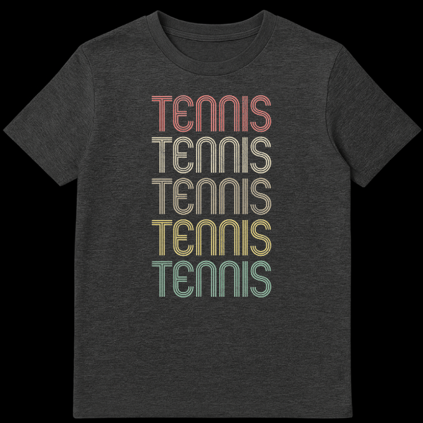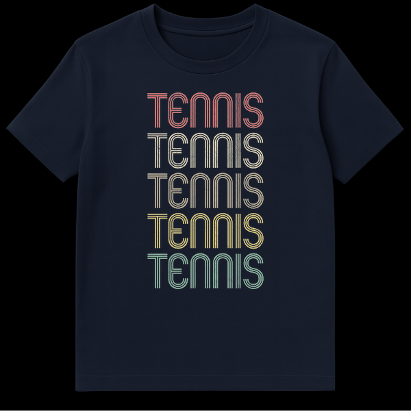 Show your love for the game with this unique vintage tennis shirt. Featuring the word “TENNIS” repeated in a stacked, multi-color retro typography style with a distressed finish, it’s a direct and stylish affirmation of your passion. This aesthetic design is a perfect gift for tennis players, fans, or anyone who appreciates old-school sports fashion.