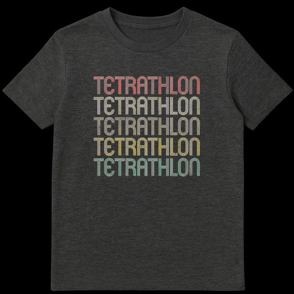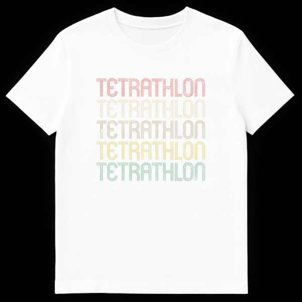Celebrate your dedication to the multi-sport challenge with this unique “TETRATHLON” t-shirt. Featuring a bold, retro-inspired stacked design with a vibrant distressed color gradient, it declares your passion for the sport. This stylish athletic wear is a perfect statement piece and an ideal gift for any tetrathlon competitor, coach, or enthusiast.