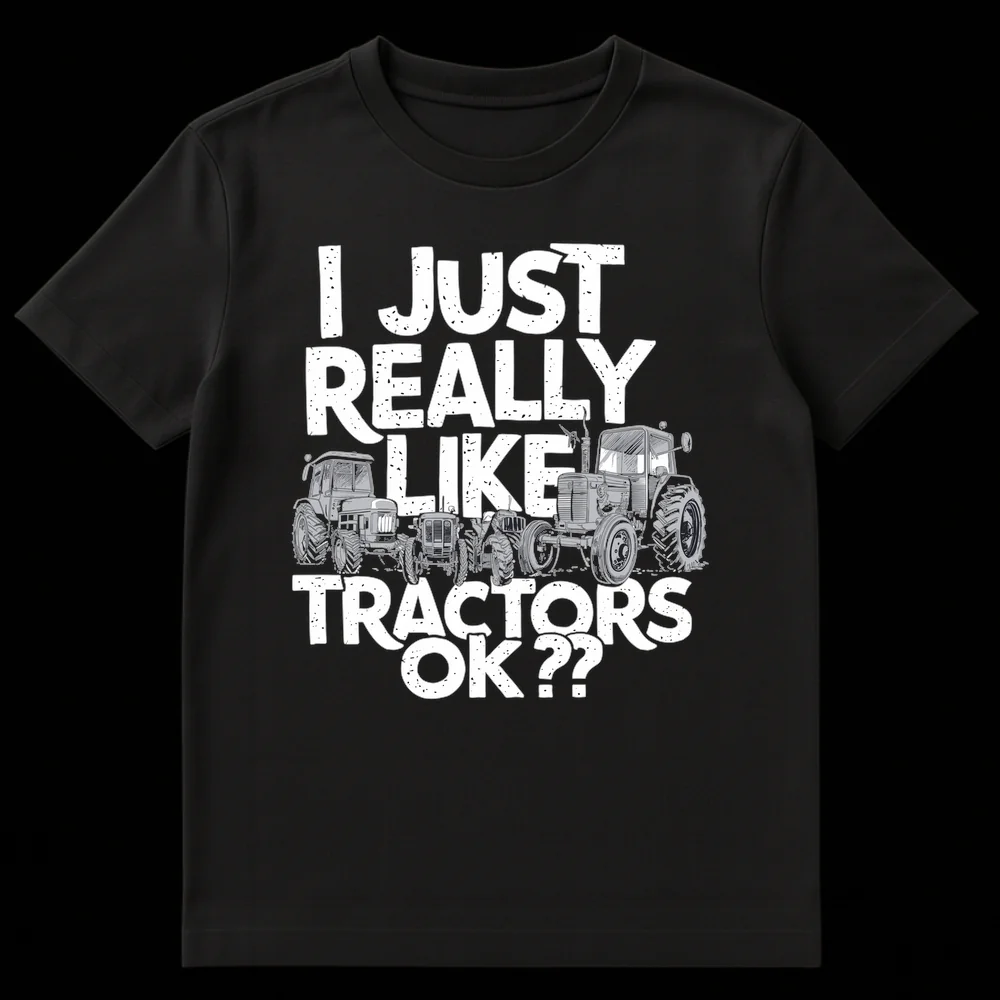 Declare your undeniable passion with our ‘I JUST REALLY LIKE TRACTORS OK??’ T-shirt. This design captures the heart of every tractor lover with its earnest, slightly exasperated declaration, paired with detailed illustrations of classic farm machinery. Perfect for farmers, rural residents, or anyone deeply connected to agriculture. It’s an ideal gift that celebrates a genuine, wholesome interest.