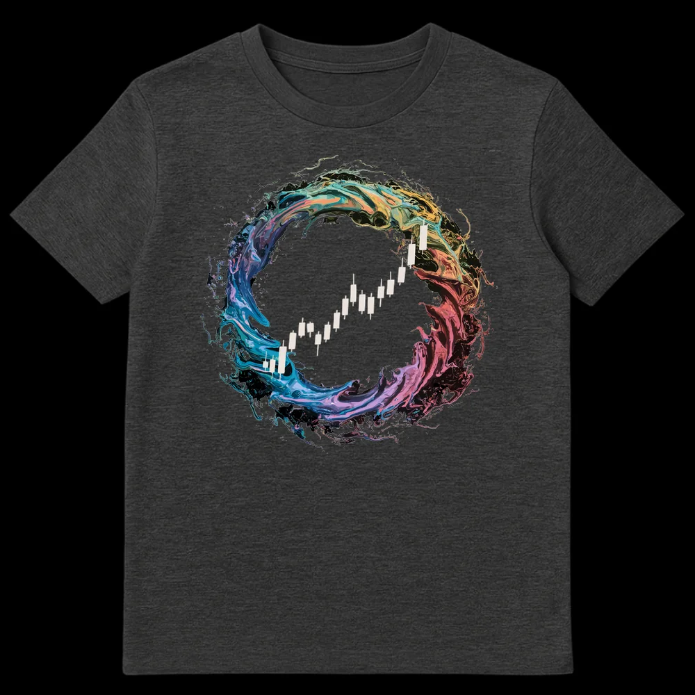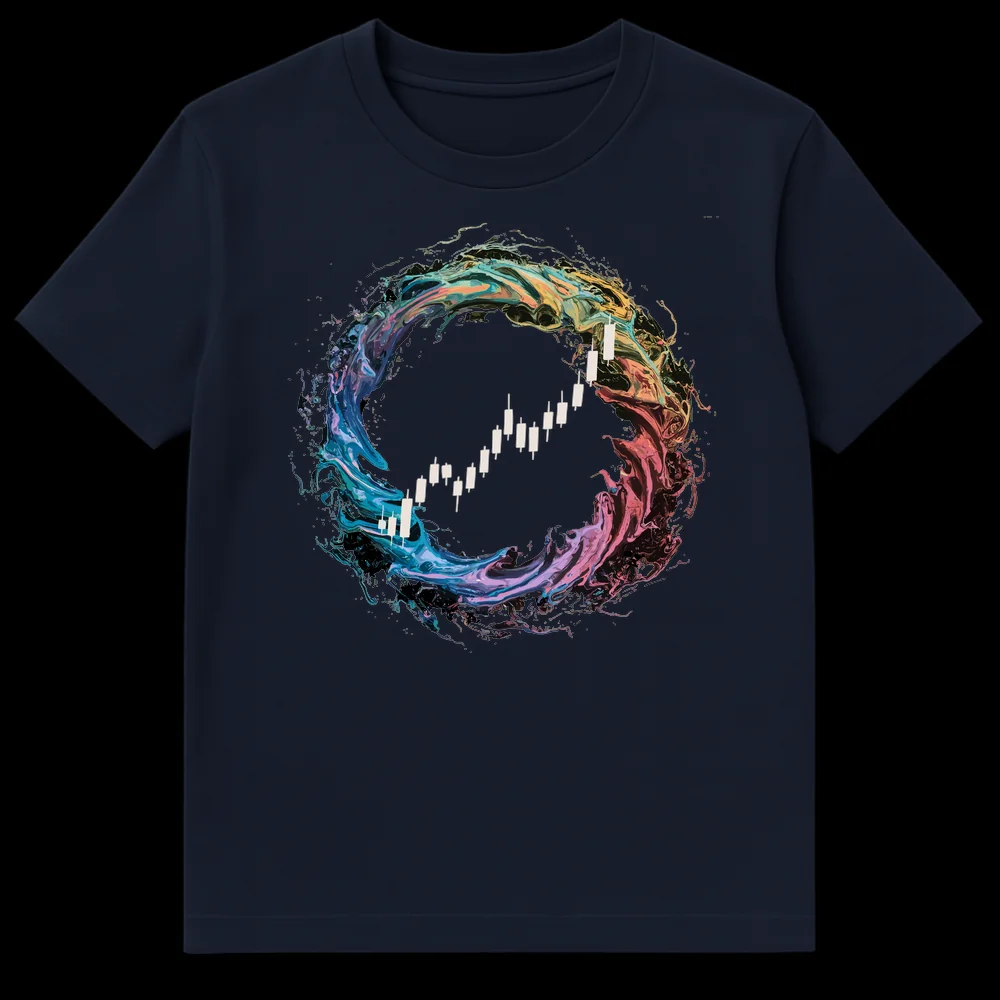 Embrace the thrill of the markets with our Bull Market Growth T-shirt, featuring a vibrant, abstract fluid swirl framing a crisp white Japanese candlestick chart showing an upward trend. This dynamic design symbolizes financial success and the exciting journey of investment. It’s the perfect statement piece for stock traders, crypto enthusiasts, or anyone passionate about financial freedom and prosperity.