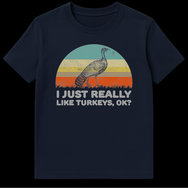 Embrace your unique interests with our “I JUST REALLY LIKE TURKEYS, OK?” t-shirt, a design that’s as sincere as it is charming. This tee features a beautifully detailed, vintage-style wild turkey set against a backdrop of a segmented, retro sunset, creating an aesthetic that’s both nostalgic and warm. The text, in a distressed font, delivers a lighthearted, slightly defensive declaration of affection for turkeys as animals, making it a truly special statement piece. It’s perfect for birdwatchers, nature lovers, or anyone who appreciates the often-overlooked charm of these magnificent birds. This shirt celebrates quirky passions and makes an excellent gift for those who value authenticity and a touch of understated humor, appealing to outdoor enthusiasts and vintage style lovers alike.