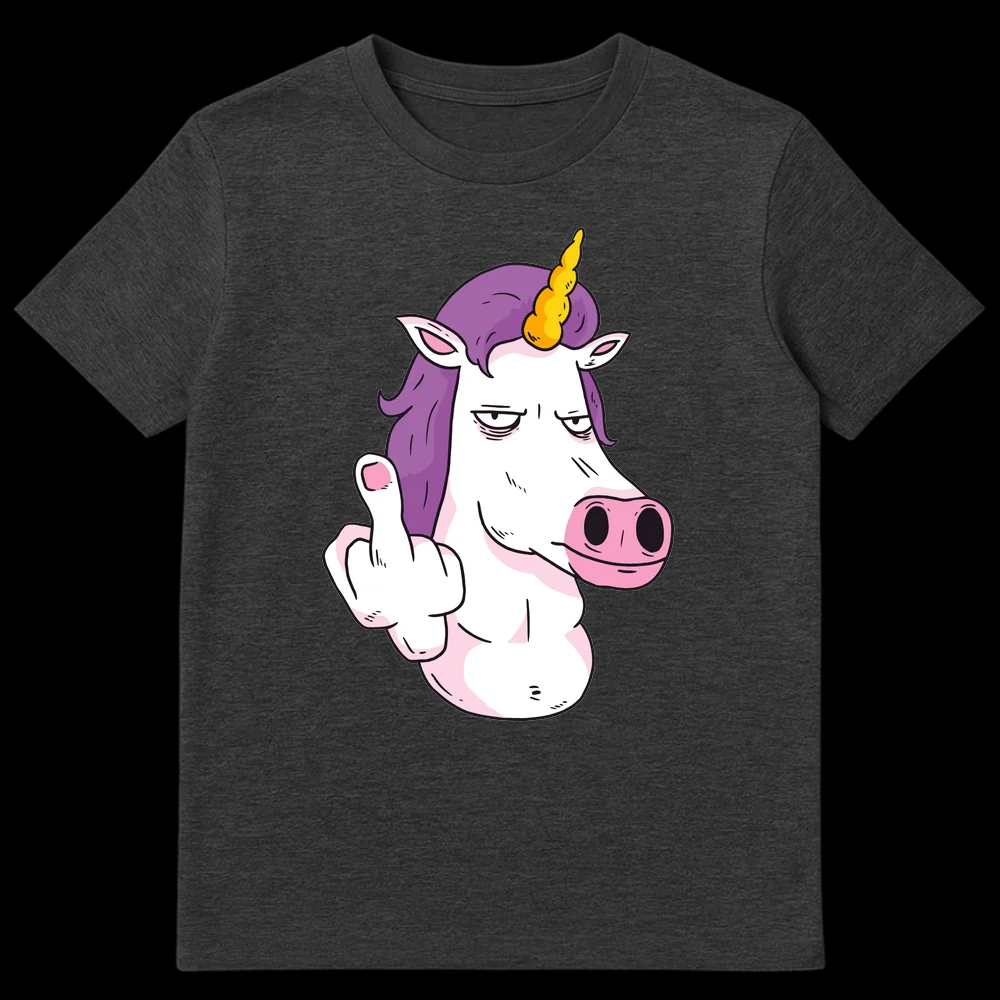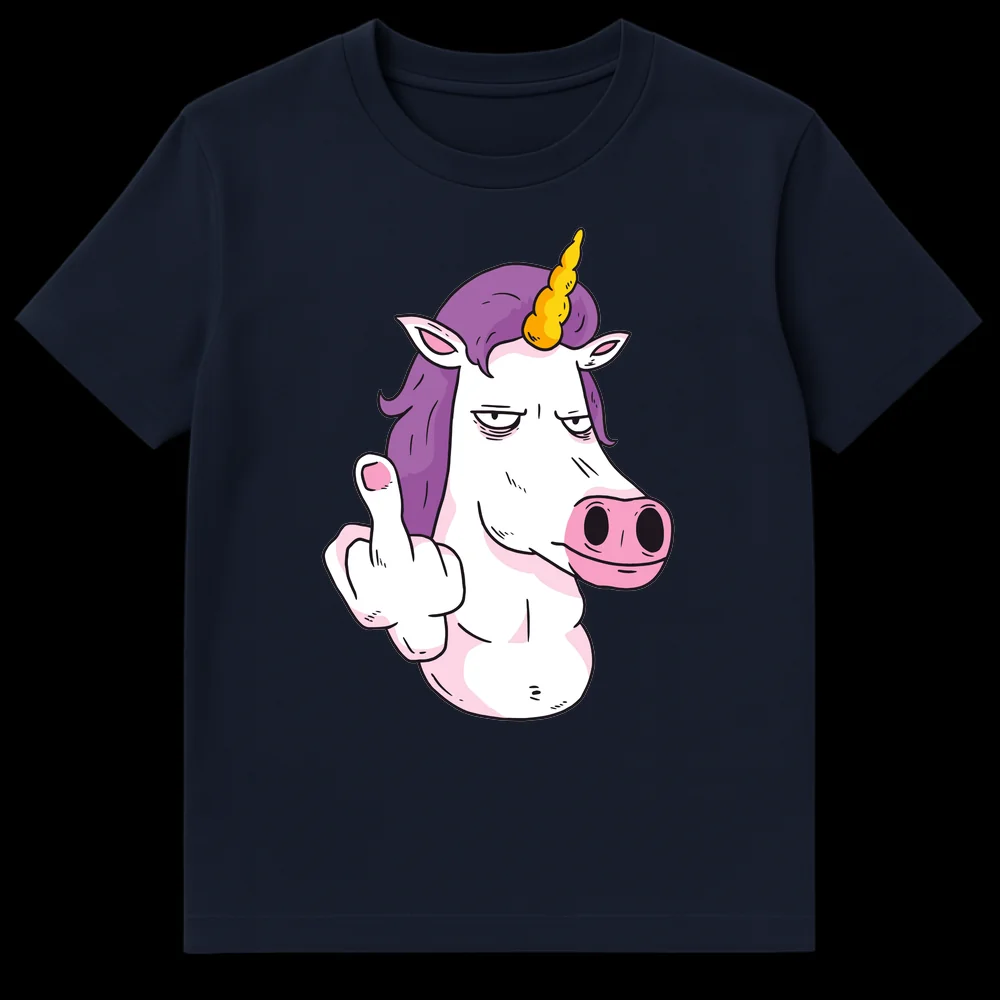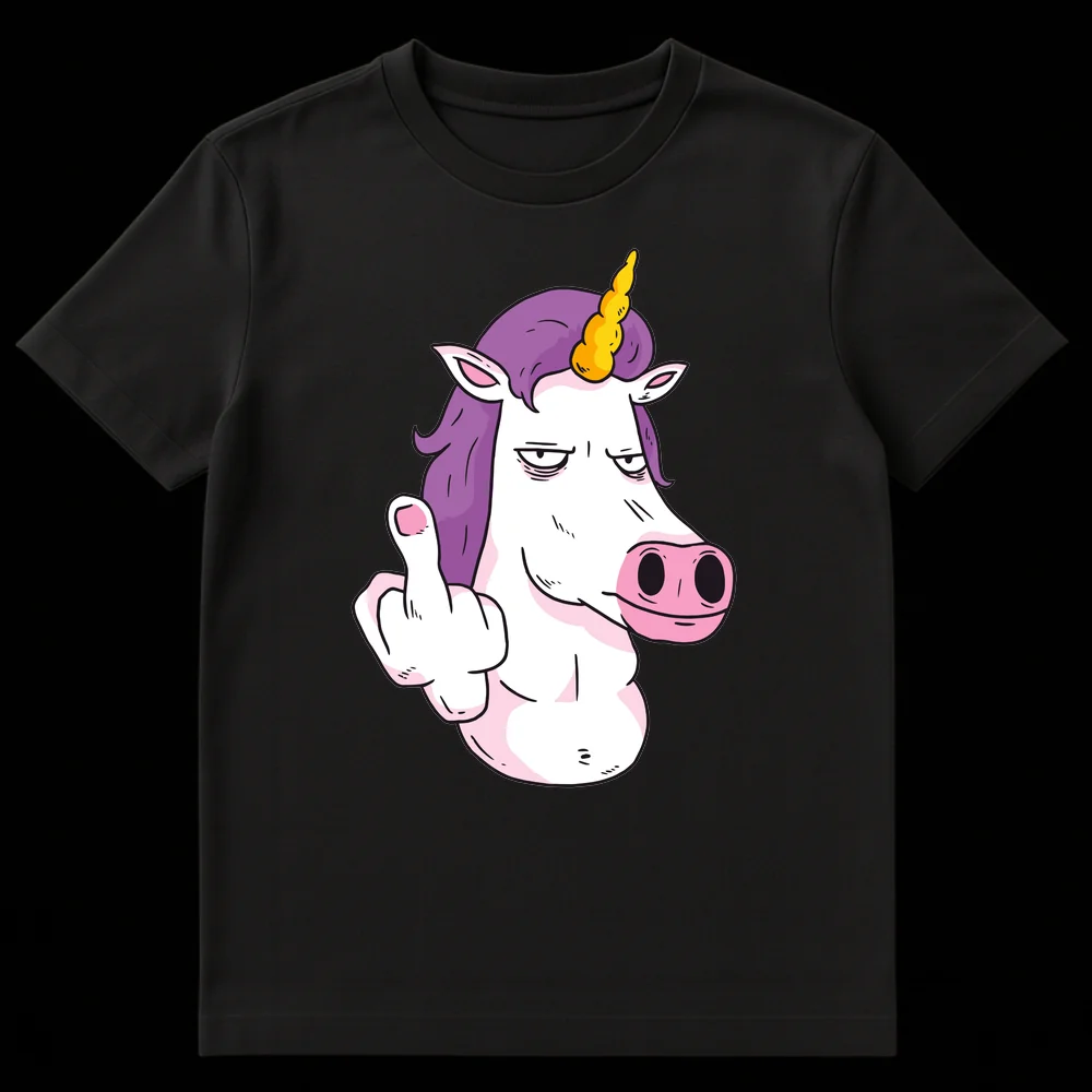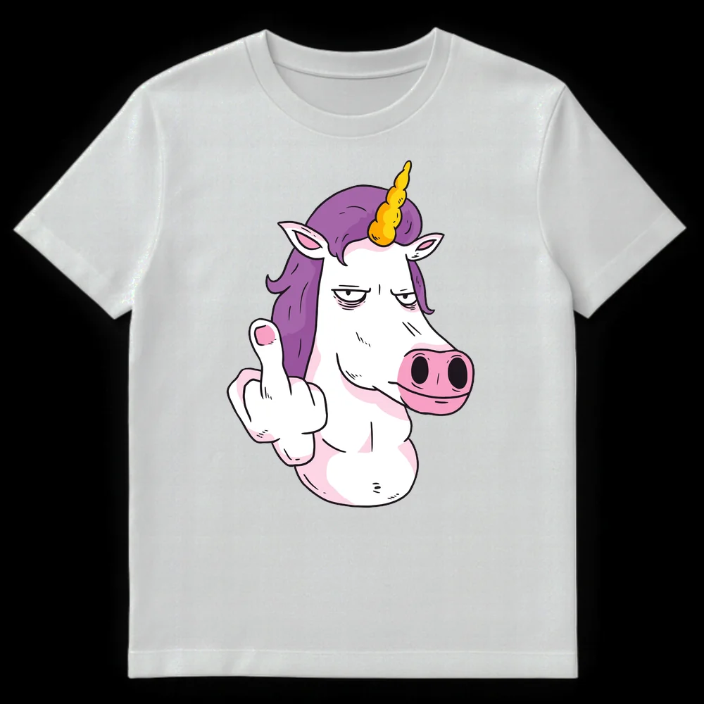 Unleash your sass with our “Unicorn Flipping Off” T-shirt, a perfect blend of mythical charm and unfiltered humor. This unique design features a typically whimsical unicorn, complete with a vibrant purple mane and golden horn, sporting an unmistakably bored and exasperated expression while defiantly raising its middle finger. It’s a brilliant visual pun that subverts the traditional sweet image of unicorns, making it a powerful statement piece for those who appreciate irony and a good laugh. Crafted for comfort, this tee is more than just clothing; it’s a conversation starter and a reflection of a “don’t care” attitude. It’s the ultimate gift for friends, family, or anyone with a rebellious spirit, a love for fantasy, and a wickedly sarcastic sense of humor. Perfect for casual outings or making a statement without saying a word, this t-shirt truly stands out.