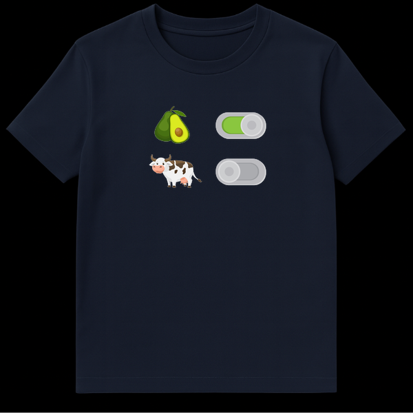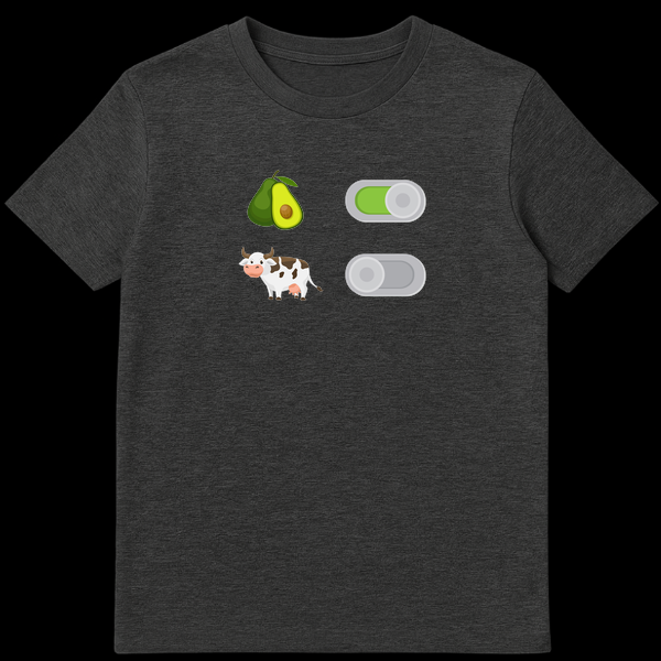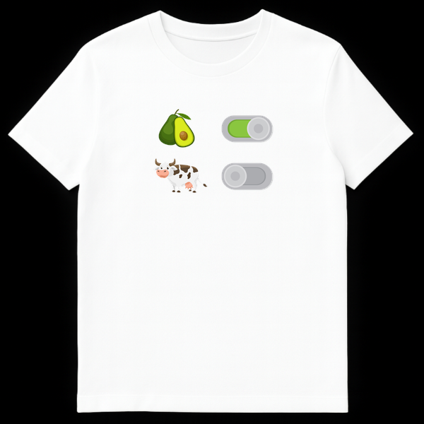 Express your dietary choices with wit and style using this unique Vegan Toggle Switch T-Shirt. The design mimics a modern smartphone settings menu, featuring two distinct rows: the top row enables avocados with a bright green ‘ON’ switch, while the bottom row disables cows with a greyed-out ‘OFF’ toggle. This visual pun perfectly encapsulates the plant-based lifestyle—pro-veggie and anti-meat—in a subtle, tech-savvy way. Made for comfort and conversation, this shirt is an ideal wardrobe addition for ethical eaters, health enthusiasts, and avocado toast lovers. Whether you are shopping for a birthday present for a vegan friend or just want to show off your green lifestyle at the grocery store, this minimalist design speaks volumes.