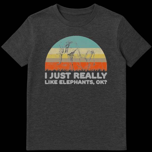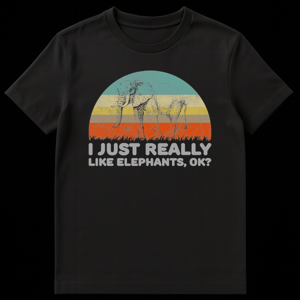 Show off your passion for pachyderms with this hilarious “I Just Really Like Elephants, OK?” design. Featuring a classic retro sunset aesthetic and a detailed elephant sketch, this shirt blends vintage style with relatable humor. It’s the perfect cheeky gift for zookeepers, safari lovers, or anyone who simply can’t get enough of these gentle giants.