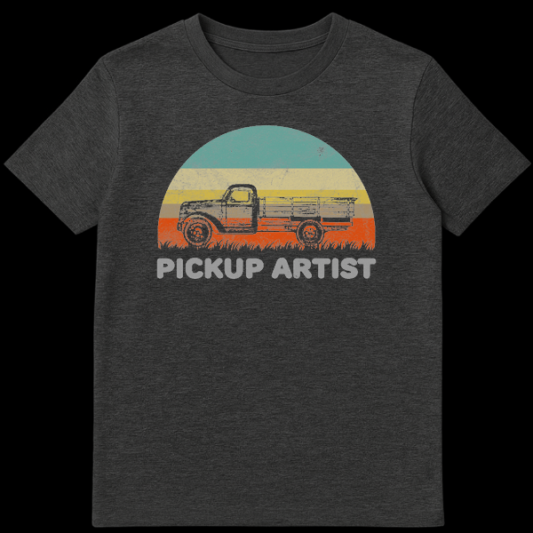 Celebrate your love for classic vehicles with this clever Pickup Artist t-shirt. Featuring a sketchy, distressed 1950s truck against a retro sunset, this design puts a wholesome twist on a well-known phrase. It is the perfect funny gift for mechanics, truck enthusiasts, and dads who appreciate a good visual pun.