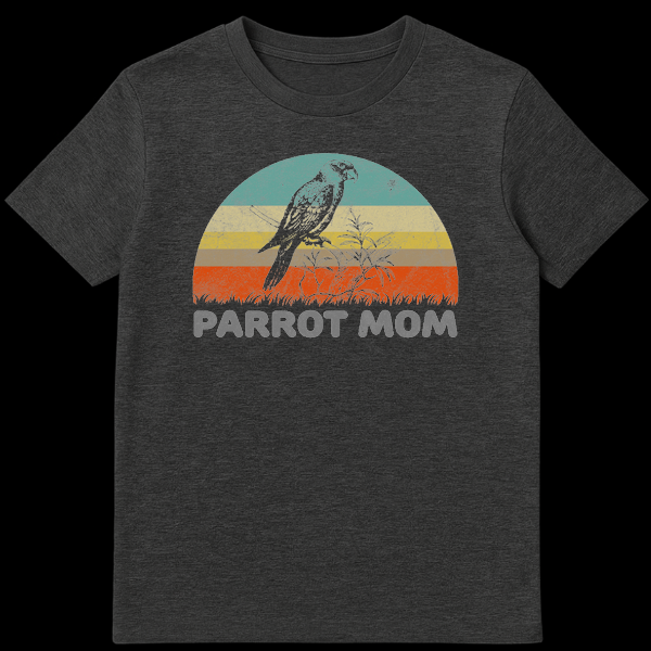 Embrace your avian affection with this stylish Parrot Mom design, featuring a beautifully sketched parrot silhouette against a classic retro sunset. The distressed vintage aesthetic gives it a cool, worn-in vibe perfect for casual outings or bird-watching adventures. This shirt makes an ideal gift for proud parrot owners, bird watchers, and anyone who considers themselves a mother to their feathered friends.