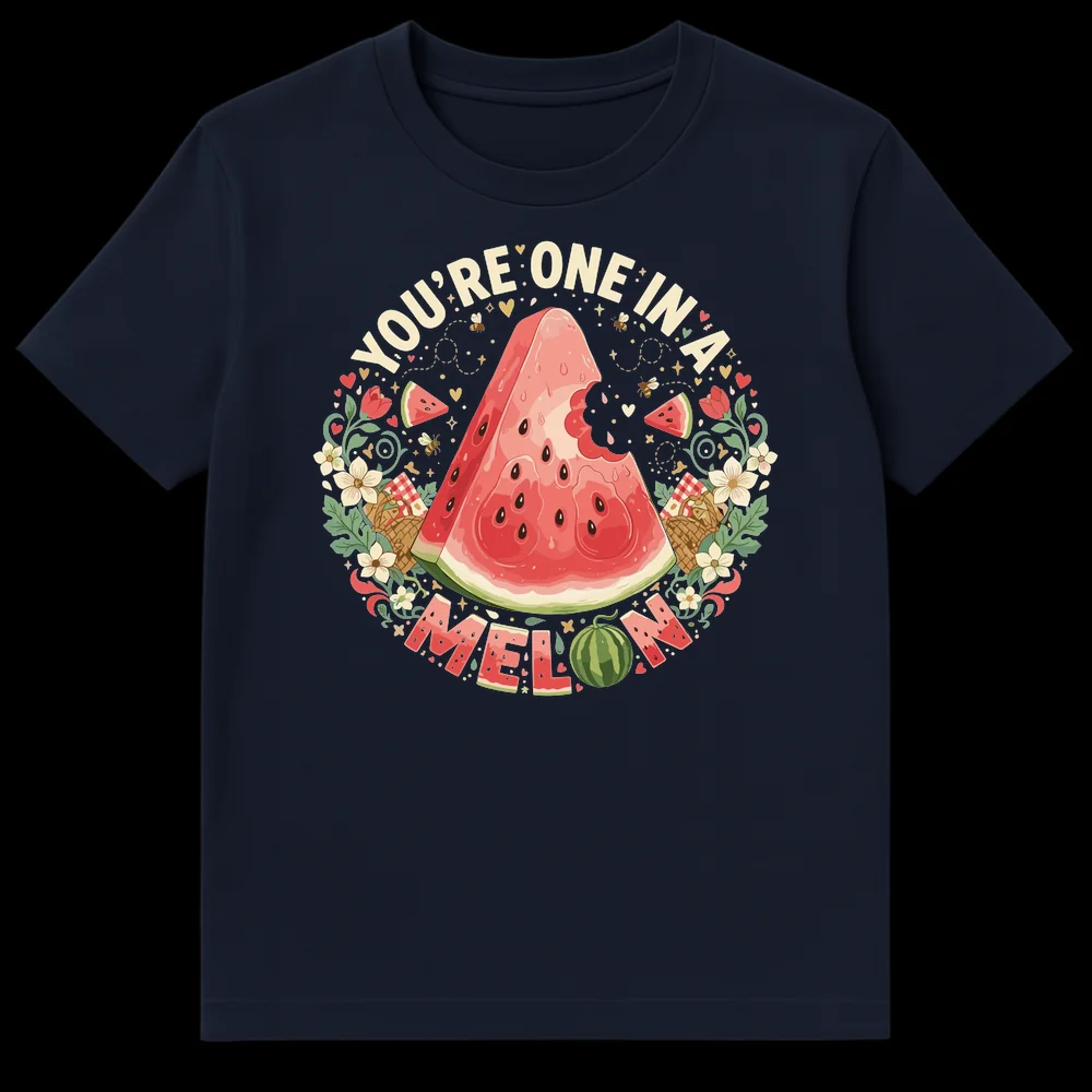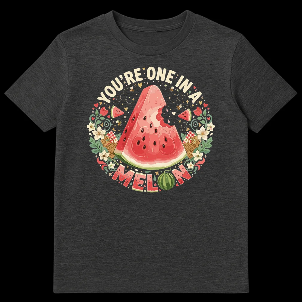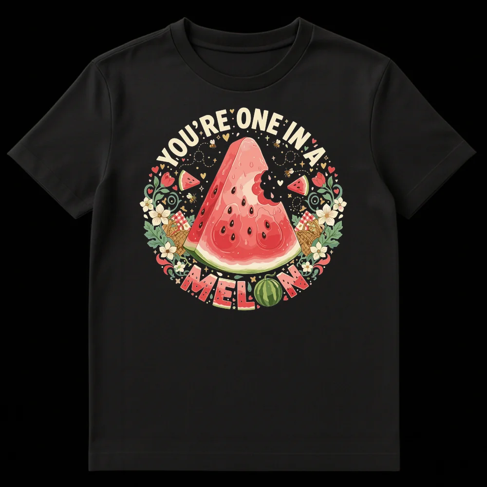 Celebrate someone special with our “YOU’RE ONE IN A MELON” t-shirt. This charming design features a whimsical watermelon graphic, playful bees, and a beautiful botanical wreath. It’s a sweet, lighthearted way to express affection and makes a perfect gift for partners, friends, or family who appreciate wholesome humor and summer vibes.