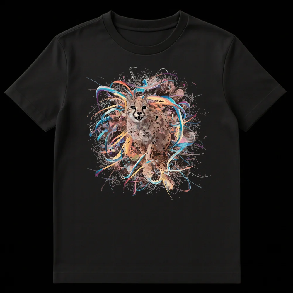 Embrace the spirit of the wild with our mesmerizing Abstract Cheetah Art T-Shirt. This design masterfully blends the raw intensity of a cheetah with the vibrant energy of Abstract Expressive Digital Art, creating a truly unique wearable masterpiece. The powerful cheetah, depicted mid-snarl, is surrounded by an explosion of multi-colored ribbons and fluid forms – a visual symphony of motion and speed against a stark black canvas. The rich palette of light browns and ochre for the animal is dramatically accented by cool blues, cyan, and warm oranges, peaches, and fuchsia, making the colors pop and ensuring all eyes are on you. This tee is more than just clothing; it’s a statement of awe and admiration for nature’s beauty and dynamism. Perfect for wildlife conservation advocates, art lovers, or anyone who identifies with the cheetah’s grace and strength, it makes an exceptional gift for teens and adults who seek bold, artistic expression in their wardrobe. Wear your passion for powerful animals and contemporary art.