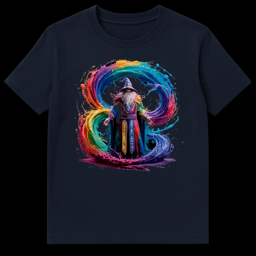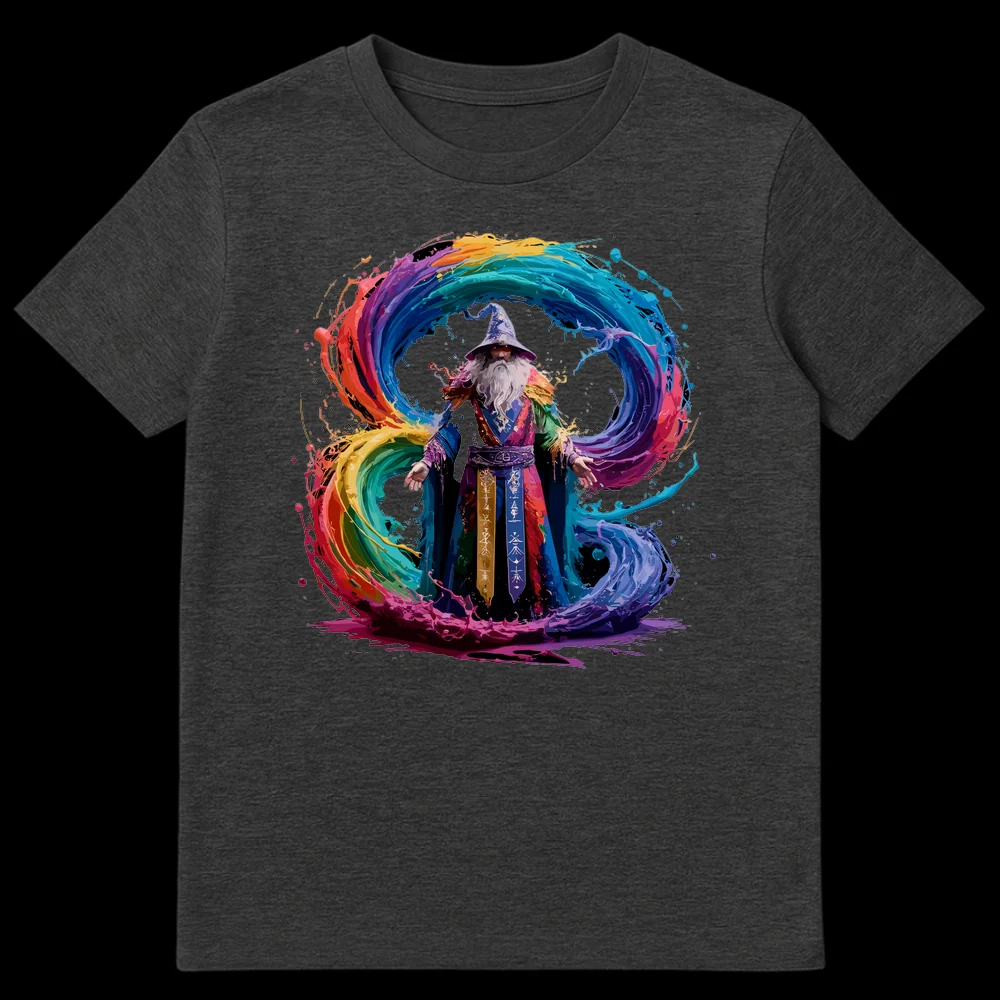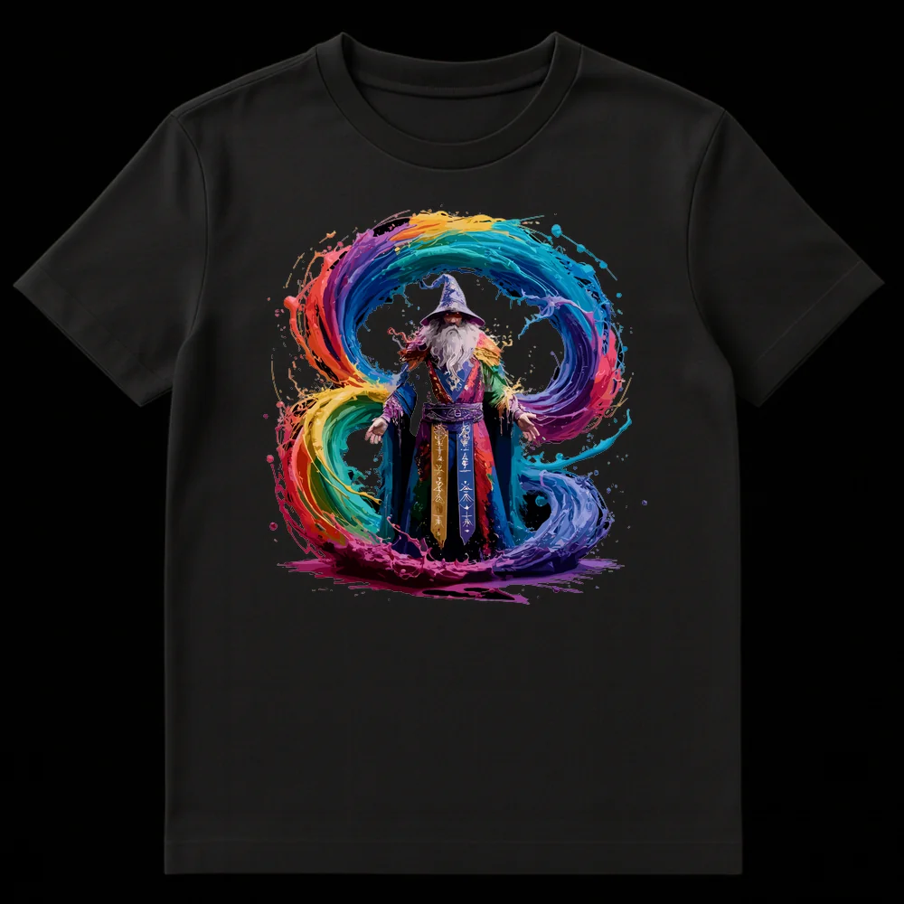 Step into a realm of pure imagination with our stunning Rainbow Wizard T-Shirt. This dynamic design showcases a wise, bearded wizard, adorned in richly colored robes, masterfully casting a spell that erupts into a spectacular, swirling vortex of liquid rainbow colors. Against a stark black canvas, the vibrant hues—red, orange, yellow, green, blue, purple, and magenta—pop with incredible intensity, creating a visually mesmerizing effect. There’s no text, letting the powerful visual artistry speak volumes about magic, creation, and boundless energy. This tee is an ideal way to express your love for classic fantasy tropes, celebrate artistic creativity, or even subtly show support for diversity and inclusivity represented by the rainbow. It’s an exceptional gift for fantasy enthusiasts, D&D players, artists, or anyone who appreciates bold, expressive apparel that sparks joy and wonder.