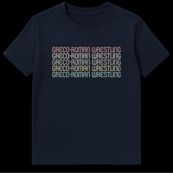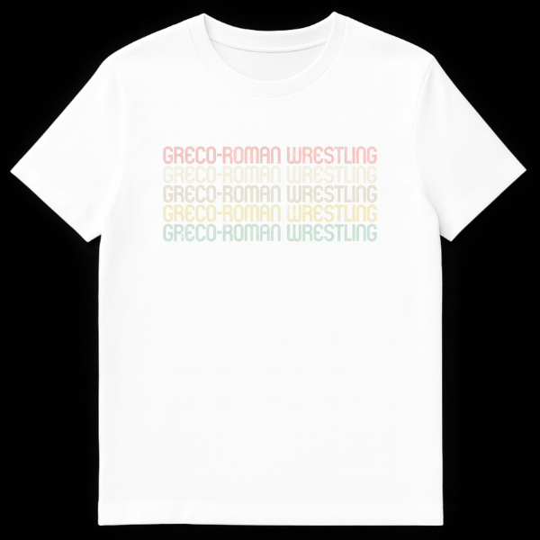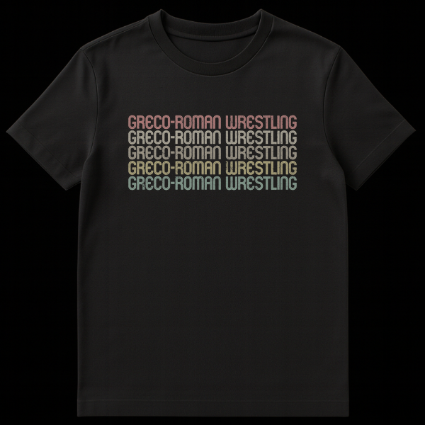 Embrace the legacy of the mat with our Greco-Roman Wrestling shirt, featuring a bold, repeated text design in a cool retro 70s-80s style. The vintage typography and distressed, muted color palette capture the authentic spirit of classic wrestling. It’s a perfect gift for any dedicated wrestler, coach, or fan who appreciates the sport’s rich heritage and old-school cool.