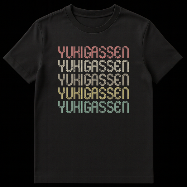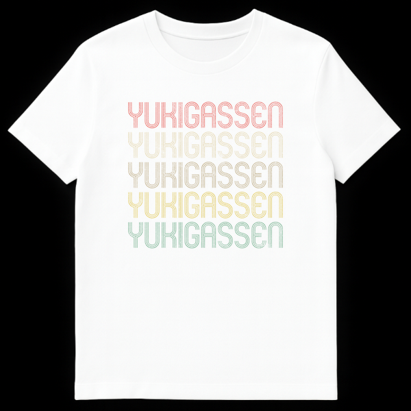 Dive into the world of competitive snow battles with our exclusive Yukigassen t-shirt! Featuring the Japanese term for ‘snowball fight’ repeated five times, this design celebrates the exhilarating sport of Yukigassen. The text is rendered in a distinctive retro, distressed multi-line font, giving it a cool vintage aesthetic. The unique color gradient, from muted coral to pale yellow and dusty teal, adds to its classic, worn-in charm, perfect for those who appreciate nostalgic style. This shirt is an ideal way to show your affiliation and love for the sport, making it a perfect gift for Yukigassen players, fans, winter sport enthusiasts, or anyone who appreciates unique Japanese cultural references and retro apparel.