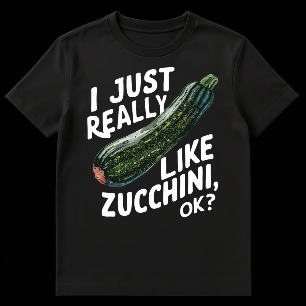 Embrace your quirky love for garden greens with this “I JUST REALLY LIKE ZUCCHINI, OK?” t-shirt. Featuring a stylized zucchini illustration and playful text, this design captures that understated, relatable humor of having a specific, simple favorite. It’s a perfect gift for gardeners, vegetable enthusiasts, or anyone who appreciates a good, wholesome laugh about their food preferences.